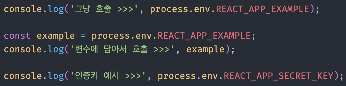 - REACT_APP_변수명 형식이 아니라면 리액트가 인식하지 못한다.