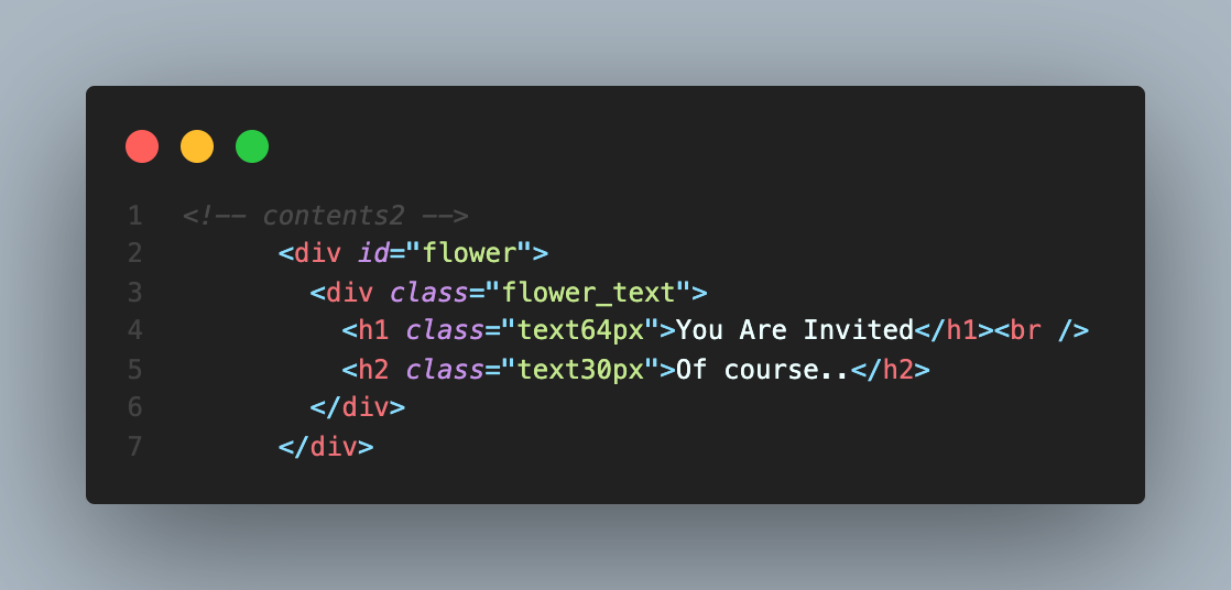 - 배경이미지가 지정되어 있고, 이미지 가운데에는 텍스트가 삽입되어 있다.
