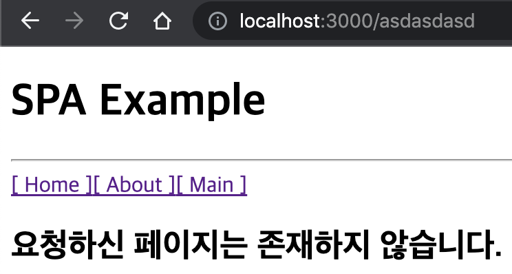- 지정되지 않은 주소를 요청시 에러 메세지를 띄운다.
