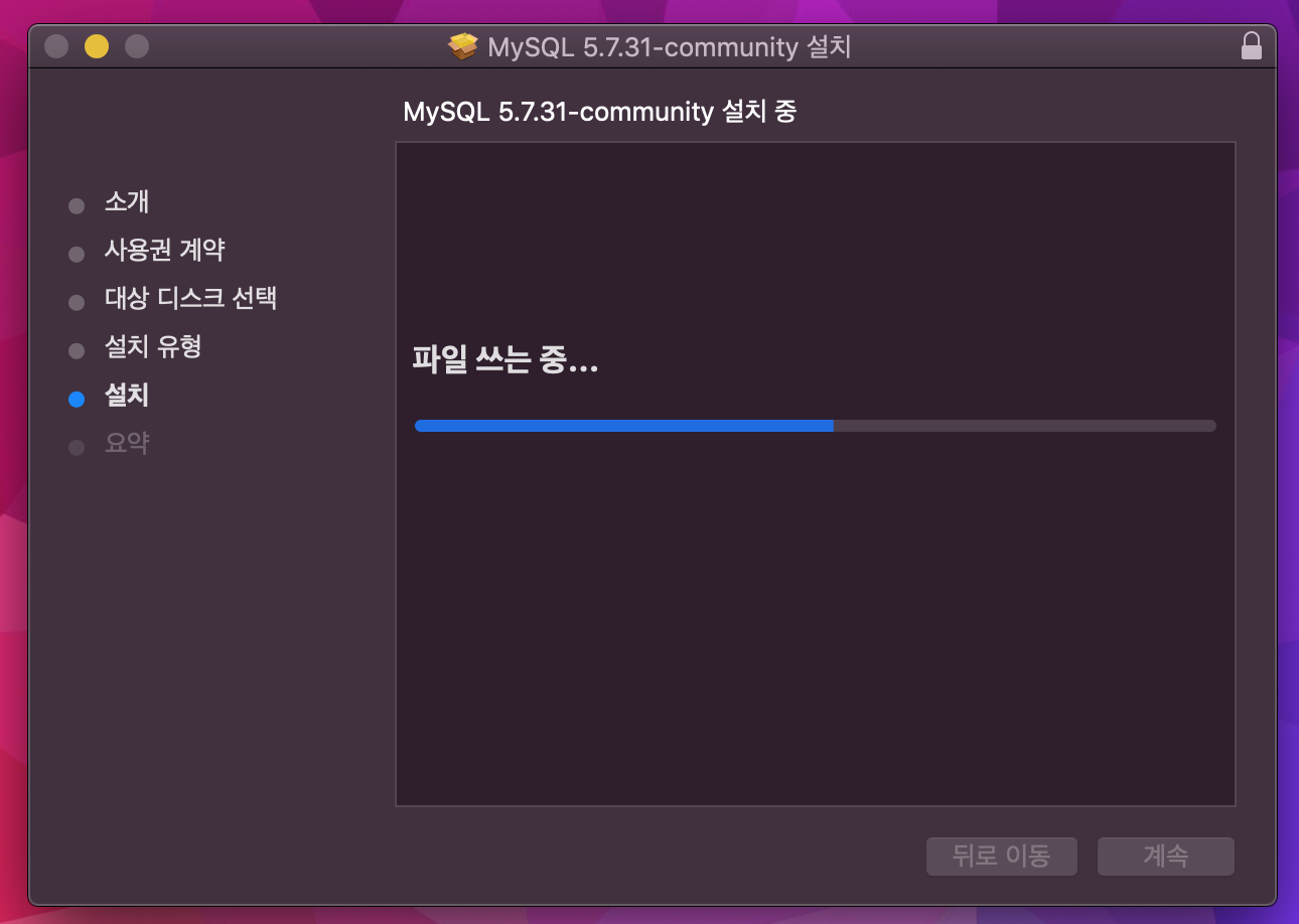 그래서 10.14 버전이 호환되는 5.7.x 버전을 다운받았다.