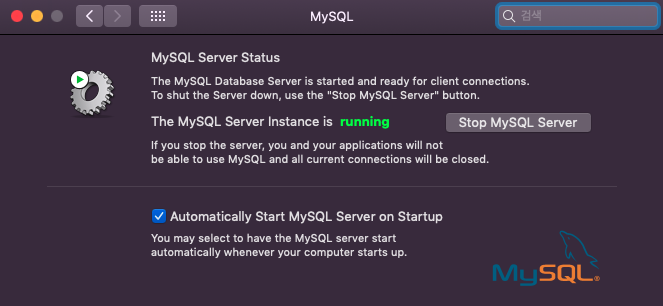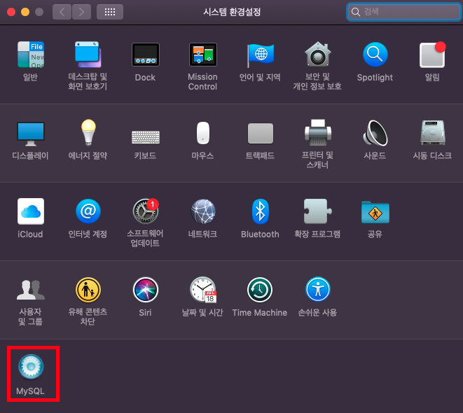 설치가 정상적으로 완료됐다면, 시스템 환경설정에 MySQL이 생겨있다.