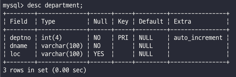 3) 테이블의 구조 확인
