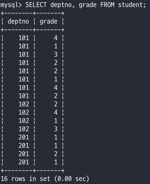 - '*'을 사용하는 것 보다 조회 속도가 상대적으로 빠르므로 실무에서는 이 방법을 주로 사용한다.