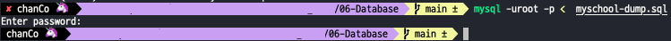 - 터미널 또는 명령프롬프트에서 sql 파일이 위치한 디렉토리로 이동한다.