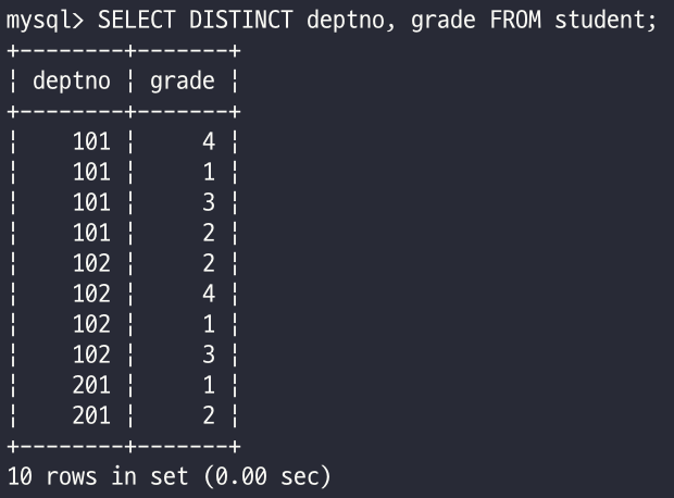 SELECT DISTINCT 칼럼명 FROM 테이블이름;