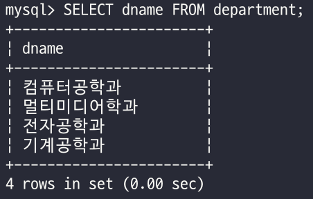 SELECT 칼럼명 FROM 테이블이름