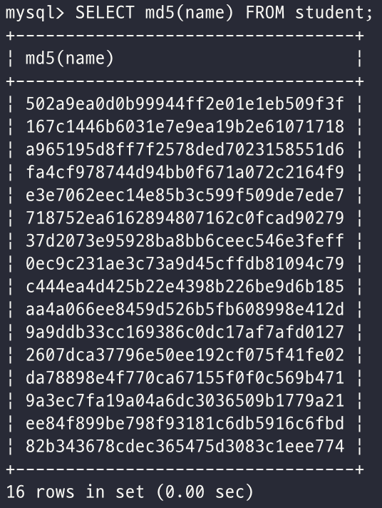 - 학생의 이름을 암호화 한 결과를 출력하시오.