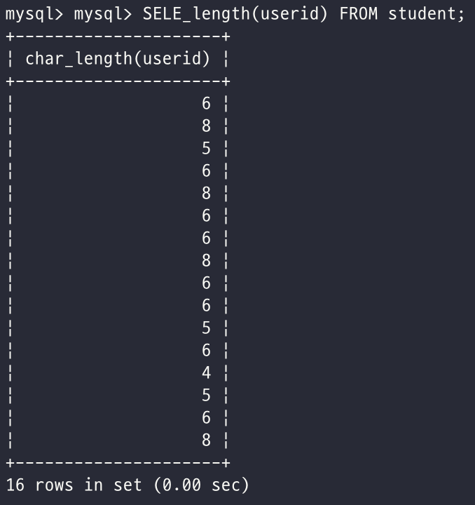 - 학생의 아이디에 대한 글자수를 조회하시오.